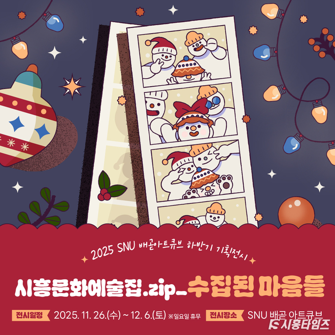 [시흥타임즈] 시흥시(시장 임병택)는 올 한 해 동안 추진한 문화도시조성사업의 다양한 프로그램 결과물을 시민과 공유하기 위해 오는 11월 26일부터 12월 6일까지 SNU 배곧 아트큐브(서울대학교 시흥캠퍼스 교육협력동 1층 로비)에서 하반기 기획전시 ‘시흥문화예술집.zip_수집된 마음들’을 개최한다.