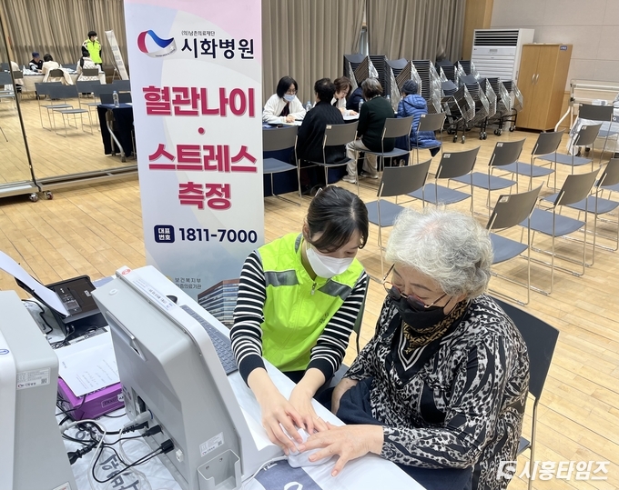 [시흥타임즈] 시흥시노인종합복지관(관장 이선미, 이하 노인복지관)은 지난 13일 의료법인 남촌의료재단 시화병원(이사장 최병철, 이하 시화병원)과 함께 찾아가는 무료 건강검진을 진행했다. 이번 검진을 위해 시화병원 간호부와 공공의료사업팀으로 구성된 진료팀 20명이 직접 노인복지관을 찾아 지역 어르신을 위한 전문 의료봉사를 제공했다.