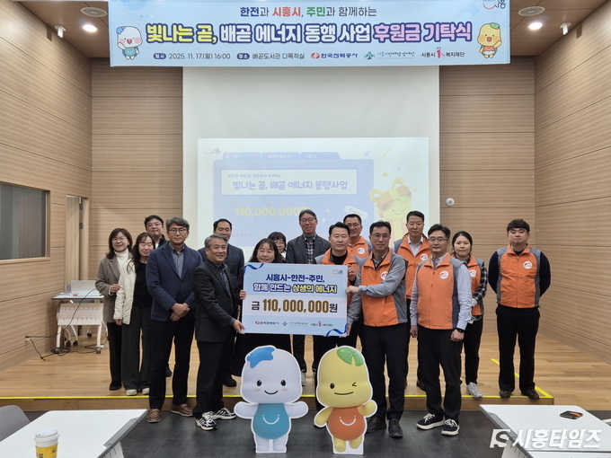 [시흥타임즈] 시흥시(시장 임병택)는 한국전력공사와 지역 상생 강화를 위해 지난 11월 17일 배곧도서관 다목적실에서 ‘시ㆍ한전ㆍ주민이 함께하는 사회공헌 후원금 기탁식’을 열었다.이날 행사에는 한국전력공사 경인건설본부, 지역 주민 대표, 시흥시인재양성재단, 시흥시1%복지재단 관계자 등 30여 명이 참석했다