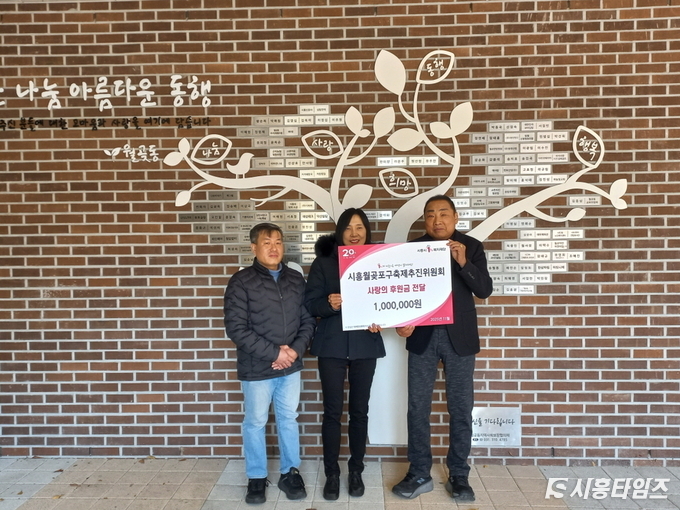 [시흥타임즈] 시흥시 시흥월곶포구축제추진위원회는 지난 11월 19일 ‘김장한마당’ 행사 지원을 위한 후원금 전달식을 진행했다. 이번 전달식에서 축제추진위원회는 오는 11월 22일 개최되는 ‘월곶동 김장 한마당’ 행사를 위해 100만 원의 후원금을 기탁했다.‘월곶동 김장 한마당’은 월곶동 지역사회보장협의체 주관으로 진행되는 행사로, 관내 저소득 취약계층을 위해 10kg 김장김치 200상자를 만들어 전달할 예정이다.