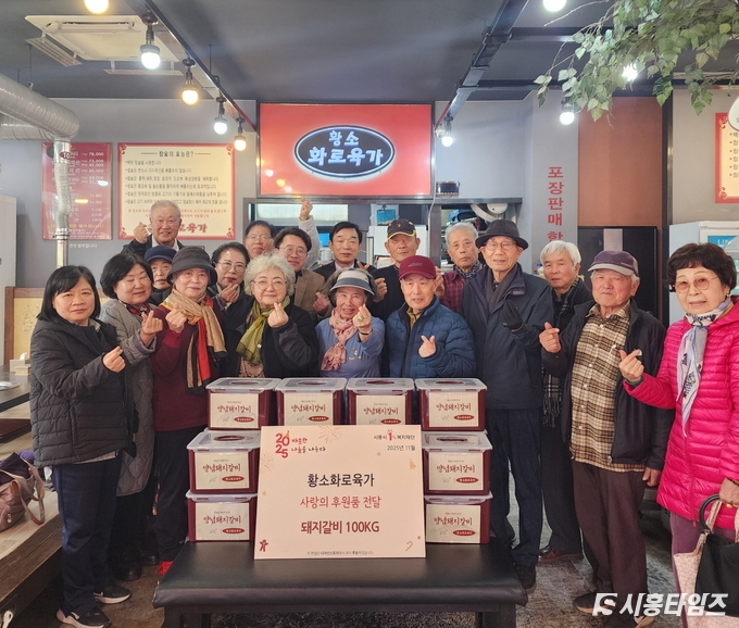 [시흥타임즈] 시흥시 능곡동 행정복지센터(동장 이상익)는 지난 11월 20일, 황소화로육가로부터 돼지양념갈비 100킬로그램을 후원받았다.황소화로육가는 9년째 관내 이웃을 위해 후원을 이어오고 있으며, 지난 9월에는 대한노인회 시흥시지회 능곡동분회와 능곡동 경로당 이용 어르신들의 복지증진과 건강한 지역사회 조성을 위한 상호 협력 협약을 체결한 바 있다.