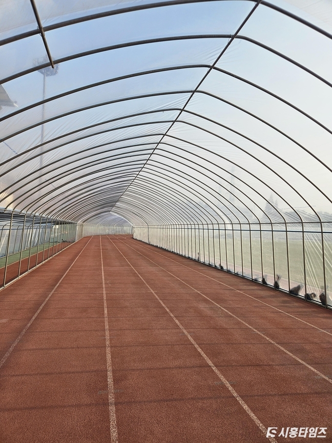 [시흥타임즈] 시흥도시공사(사장 유병욱, 이하 공사)는 시흥시 육상경기장(시흥시 역전로 2) 트랙을 2025년 12월부터 2026년 2월까지 한시적으로 무료 개방한다고 밝혔다.현재 트랙 위에는 한파 대피용 비닐하우스 설치가 완료되어, 겨울철 맹추위에도 러닝을 즐길 수 있다. 쾌적한 시설 운영을 위해 음식물 반입금지, 자전거 및 킥보드 입장 제한 등 몇 가지 이용수칙을 준수하여 이용할 수 있다.