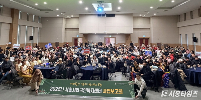 [시흥타임즈] 시흥시외국인복지센터는 지난 12월 14일 시흥비즈니스센터 컨벤션홀에서 ‘2025년 시흥시외국인복지센터 사업보고회’를 열고, 한 해 동안의 사업 성과를 공유하며 외국인 주민 간 화합의 시간을 가졌다.행사에는 재시흥교민회 회원과 센터 프로그램 참여자 등 외국인 주민 300여 명이 참석했다.