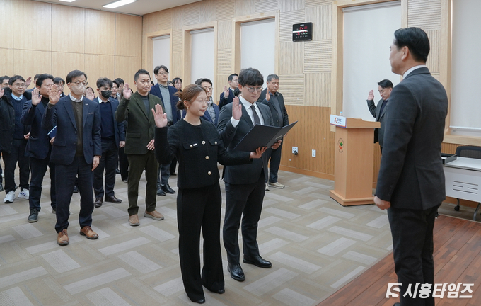 [시흥타임즈] 시흥도시공사(사장 유병욱, 이하 공사)는 지난 12일 공사 본사에서, 2026년 신년을 맞아 무재해, 인권경영 및 청렴윤리 실천, 개인정보보호에 대한 의지를 대내외적으로 표명하기 위한 ‘3대 경영의지 선포식’을 개최했다고 밝혔다.무재해 선포식은 노사가 협력하여 산업재해 없는 안전한 근무환경 조성 의지를 대내외적으로 공표하기 위해 추진됐다. 주요 선포사항은 ▲위험예지 활동 생활화 ▲불안전한 작업 상태 및 잠재 위험요인의 사전 발굴·제거 ▲작업 전 안전점검 및 안전수칙 준수 철저 ▲전 직원 참여형 안전문화 정착 등으로, 2026년 무재해 달성을 위해 안전활동을 더욱 고도화할 계획이다.