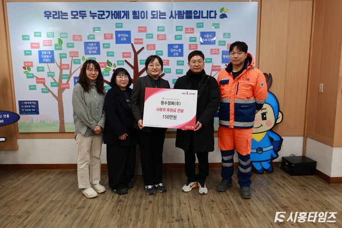 [시흥타임즈] 청수정화㈜는 지난 2월 10일 설 명절을 앞두고 정왕2동 취약계층을 돕기 위해 후원금 150만 원을 정왕2동 지역사회보장협의체에 전달했다.청수정화(주)는 지역 환경정화 및 위생관리 전문기업으로, 매년 후원금과 물품 기탁을 통해 어려운 이웃을 지원하며 민관 협력 복지 실현에 힘을 보태고 있다.