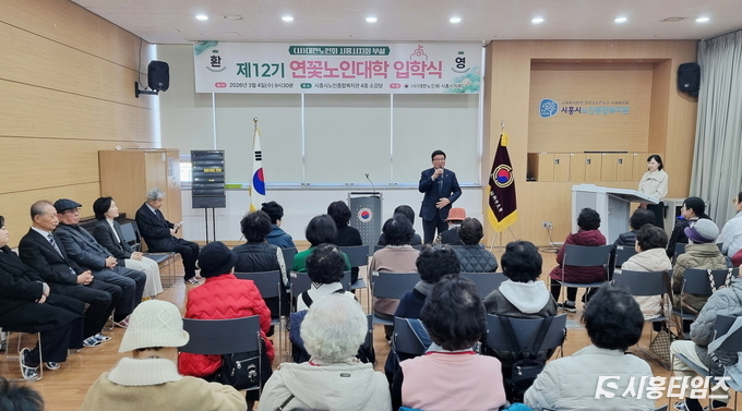 [시흥타임즈] 시흥시(시장 임병택)는 지난 3월 4일 대한노인회 시흥시지회 부설 ‘연꽃노인대학’ 제12기 입학식을 시흥노인종합복지관 소강당에서 열려 40명이 입학 등록을 마쳤다.신입생 어르신과 내외빈 등 50여 명이 참석한 이날 입학식에는 김연규 대한노인회 시흥시지회장과 김장철 학장, 하소윤 시흥시 노인복지과장, 이선미 시흥시노인종합복지관장 등이 참석해 어르신들의 새로운 출발을 축하했다. 행사는 노인강령 낭독을 시작으로 환영사와 축사, 강사 위촉장 전달, 전년도 노인대학 활동 영상 시청 순으로 진행됐다.