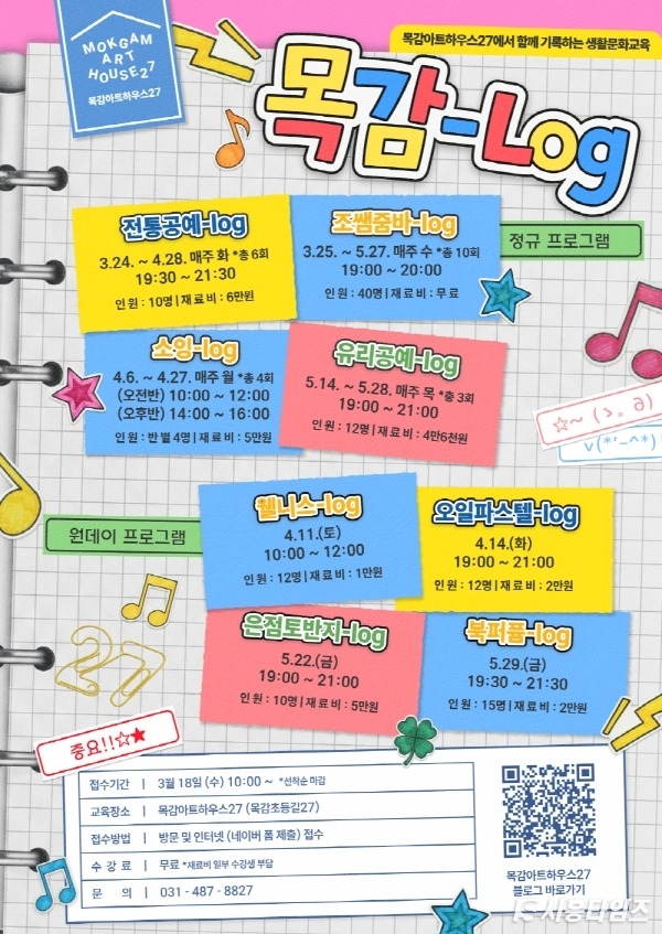 [시흥타임즈] 시흥시(시장 임병택)는 목감아트하우스27에서 운영하는 상반기 생활문화교육 ‘목감-로그(log)’ 참여자를 모집한다.