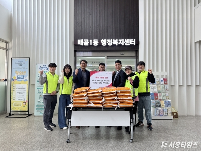 [시흥타임즈] 시흥시 배곧1동 체육회와 ㈜세일쇼핑 배곧점은 지난 3월 17일, 배곧1동 특화사업인 ‘배곧애(愛) 미(米)’ 쌀 기부 캠페인에 동참해 지역 내 어려운 이웃을 위해 각각 쌀 10kg 10포씩 기부했다.‘배곧애(愛) 미(米)’ 쌀 기부 릴레이는 지난해부터 배곧1동 관계단체 등이 함께 추진해 온 나눔 캠페인으로, 지역사회에 따뜻한 나눔 문화를 확산하는 데 기여하고 있다.