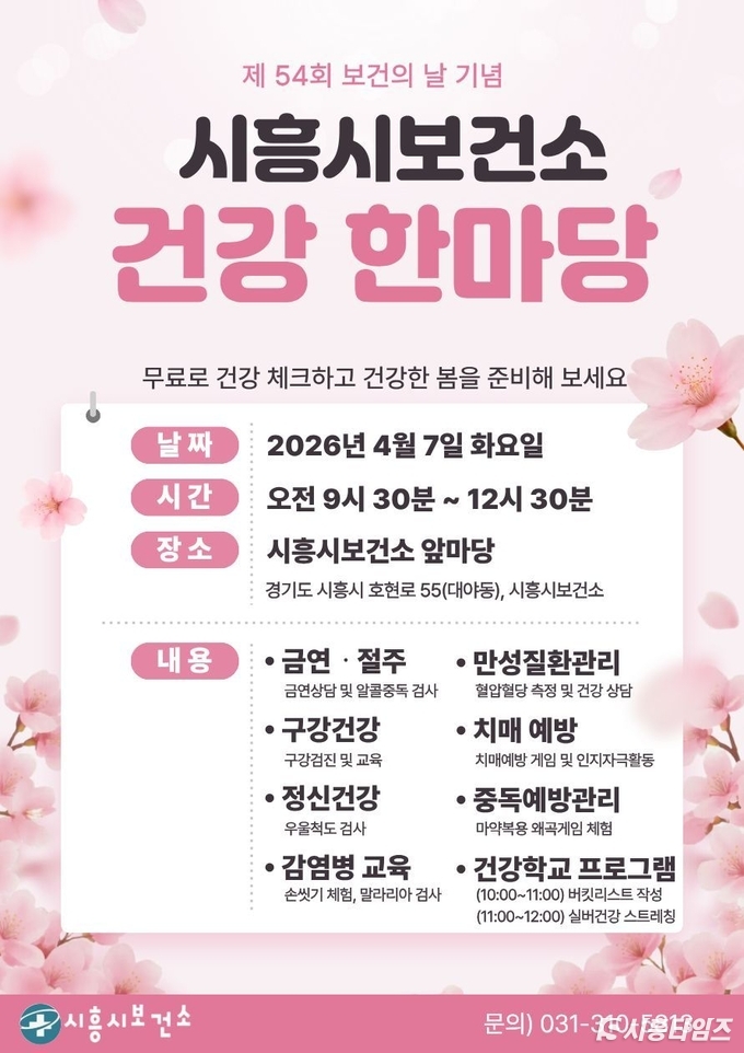 [시흥타임즈] 시흥시(시장 임병택)가 오는 4월 7일 ‘제54회 보건의 날’을 맞아 시흥시보건소 앞마당에서 시민의 질병 예방과 건강 인식 제고를 위한 ‘건강 한마당 홍보관’을 운영한다.