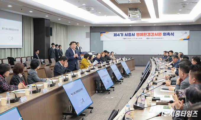 [시흥타임즈] 시흥시(시장 임병택)는 지난 3월 27일 시청 글로벌센터에서 ‘제4기 시흥시 명예환경감시원 위촉식’을 열고 시민 참여 기반의 환경감시 활동을 본격 확대했다.이번 위촉식은 시민의 자발적인 환경보전 참여를 활성화하고 생활 속 환경오염을 예방하기 위한 민관 협력체계를 강화하고자 마련됐다. 이날 위촉된 제4기 명예환경감시원은 총 49명으로, 신규 위촉 22명과 재위촉 27명으로 구성됐다. 위촉 기간은 2027년 12월까지 2년이다.