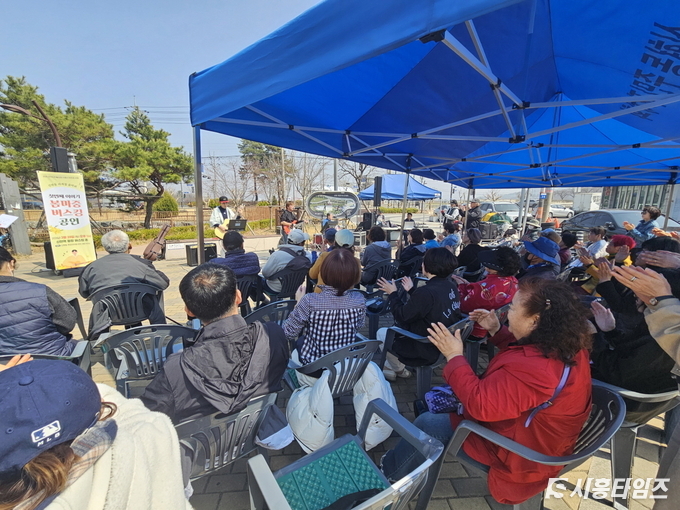 따스한 햇살 아래 펼쳐진 버스킹 공연은 오후1시부터 2시 30분까지 이어졌다. 4명의 공연자가 참여해 통기타 연주와 노래로 봄의 감성을 전했다. 겨울 끝자락을 지나 봄을 맞이하는 시간 속에서, 주민들은 음악과 함께 계절의 변화를 만끽했다.