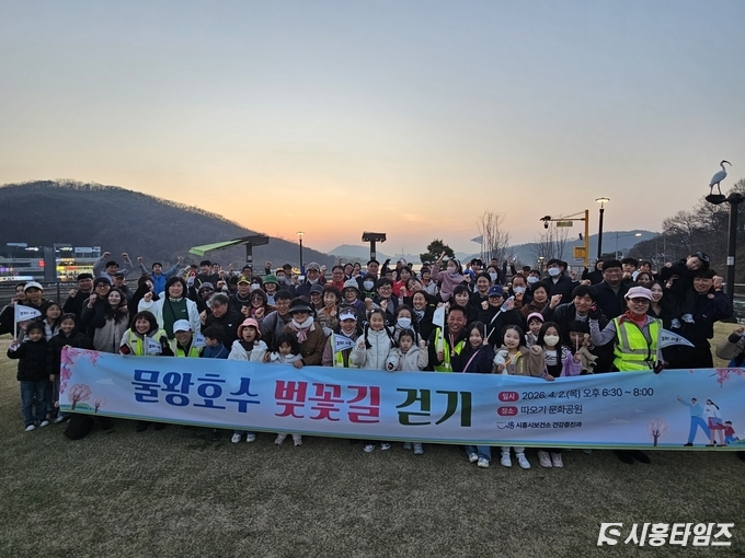 [시흥타임즈] 시흥시보건소는 지난 4월 2일 목감동 따오기문화공원 일원에서 열린 ‘물왕호수 벚꽃길 걷기’ 행사를 시민들의 큰 호응 속에 마무리했다고 밝혔다.이번 행사는 벚꽃이 만개한 물왕호수 둘레길을 배경으로 시민들의 건강 증진과 걷기 실천 분위기 조성을 위해 마련된 야간 걷기 프로그램으로, 많은 시민이 참여해 봄밤의 정취를 즐겼다.