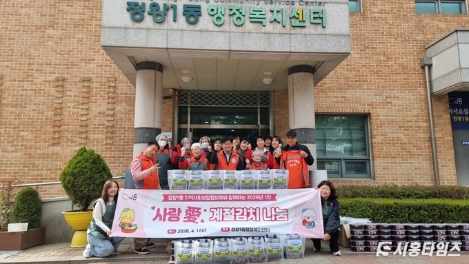 [시흥타임즈] 시흥시 정왕1동 지역사회보장협의체는 지난 4월 1일 제철 농산물로 담근 김치를 취약계층에 전달하는 ‘사랑애(愛) 계절김치 나눔’ 사업을 추진했다.이번 행사는 협의체 위원들이 직접 담근 열무얼갈이 김치(2.2kg)와 나박김치(1.5L)를 관내 저소득 독거 중장년 및 노인 130가구에 전달하는 방식으로 진행됐다. 위원들은 열무와 배추 등 식재료 상태를 꼼꼼히 확인하고, 손질부터 양념까지 전 과정을 직접 수행하며 정성을 더했다.