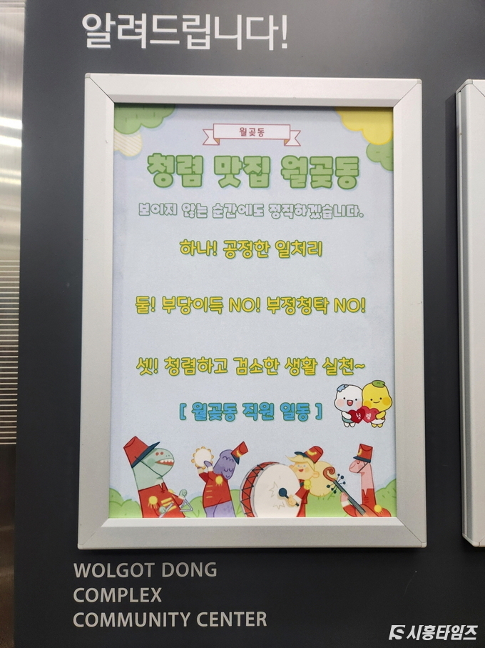 조명화 월곶동장은 “직원들이 직접 참여해 만든 청렴 표어인 만큼 의미가 더욱 크다”라며 “앞으로도 생활 속에서 실천하는 청렴 문화가 조직 전반에 정착될 수 있도록 다양한 시책을 지속적으로 추진하겠다”라고 말했다.