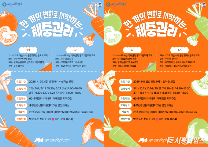 [시흥타임즈] 시흥시보건소 중부건강생활지원센터는 지역주민의 올바른 식생활 실천을 유도하고 건강한 체중 관리 및 비만 예방을 위해 영양·조리 교육 프로그램 ‘한 끼의 변화로 시작하는 체중관리’를 센터 영양교육실에서 운영한다. 본 프로그램은 5월부터 11월까지 총 4기수로 운영되며, 기수별 8명씩 총 32명을 모집한다. 교육은 주 1회, 총 4회 과정으로 진행되며, 실습 중심의 대면 교육으로 구성됐다.