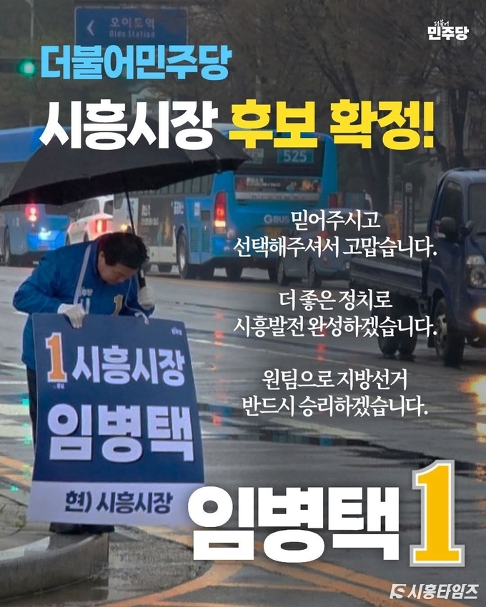 임 예비후보는 지난 13일부터 14일까지 진행된 당내 경선 투표에서 이동현 예비후보를 누르고 시흥시장 후보로 최종 선출됐다. 이번 경선 승리는 현직 시장으로서의 안정적인 시정 운영 능력과 ‘민주당 원팀’을 기반으로 한 강력한 조직력이 결합한 결과로 풀이된다.