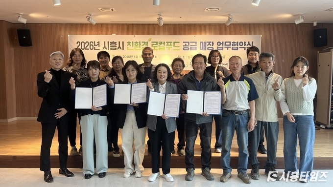 [시흥타임즈] 시흥시학교급식지원센터는 지난 4월 14일 능곡어울림센터 3층 다목적실에서 관내 로컬푸드 공급 매장 관계자와 지역 생산 농가 대표 등이 참석한 가운데 친환경 로컬푸드 공급 확대를 위한 업무협약을 체결했다.이날 협약식에는 이미경 센터장을 비롯해 경인선 경기두레생협 이사장, 정병덕 시흥시 친환경농업인연합회 회장, 관내 친환경 농가 관계자 등이 참석해 지역 농가의 소득 안정과 시민에게 안전하고 신선한 먹거리 제공을 위한 상호 협력 의지를 다졌다.