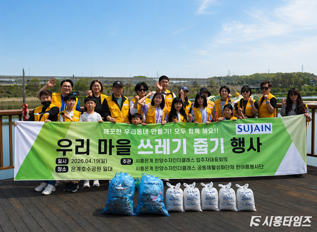 시흥은계 한양수자인아파트 공동체활성화단체인 ‘한아름봉사단’은 지난 19일 은계호수공원 일대에서 ‘우리 마을 쓰레기 줍기 행사’를 열고 깨끗한 마을 만들기에 나섰다. 이번 행사는 입주자대표회의 주관으로 진행됐으며, 입주민과 어린이, 가족 단위 주민들이 함께 참여해 의미를 더했다.