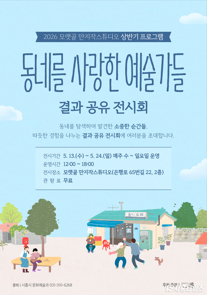 [시흥타임즈] 시흥시는 오는 5월 13일부터 24일까지 문화재생공간 모랫골 만지작스튜디오에서 2026년 상반기 프로그램 ‘동네를 사랑한 예술가들’ 결과 공유 전시를 개최한다.‘동네를 사랑한 예술가들’은 시민들이 익숙한 동네의 풍경과 이야기를 예술가의 시선으로 재해석하고, 이를 다양한 예술 장르로 표현해 보는 문화예술 워크숍이다. 이번 전시는 7주간 지역 예술가와 시민이 함께 참여해 완성한 작품을 시민들과 공유하기 위해 마련됐다.