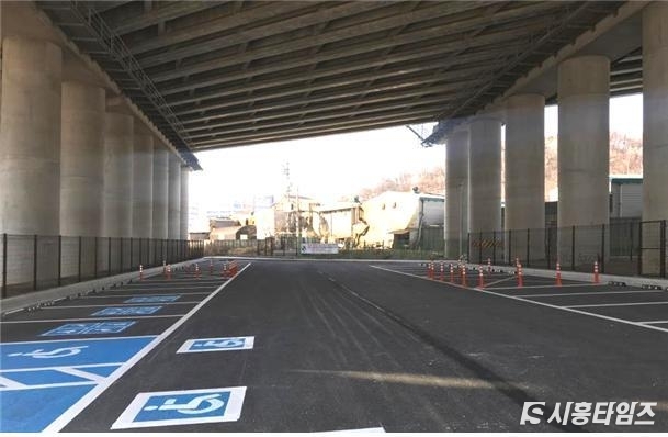 시흥시가 22일 광역버스와 공항버스 이용자의 주차편의를 위해 서울외곽순환고속도로 하부에 ‘하늘휴게소 환승주차장’을 조성했다고 밝혔다.이번에 조성한 ‘하늘휴게소 환승주차장’은 시흥시 조남동 193번지 일원에 위치했다. 주차장 104면과 보안등, 주차관제시스템을 완비했다.