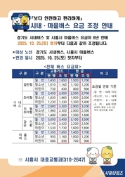 [시흥타임즈] 시흥시가 오는 10월 25일 첫차부터 경기도 시내버스 및 시흥시 마을버스 요금을 조정한다. 이번 요금 조정은 지난 6년간 유지돼 온 요금 체계를 현실에 맞게 조정해 버스 운행의 안정성과 서비스 품질을 지키기 위한 불가피한 결정이다. 최근 수년간 최저임금 인상, 주 52시간 근무제 도입, 운영비 상승 등으로 버스 운수업체의 경영 여건이 악화하면서 일부 노선의 운행이 위태로운 상황에 놓였다. 이에 시는 시민의 일상을 지키는 대중교통 서비스가 중단되지 않도록 요금 조정을 추진했다. 조정된 요금은 교통카드 기준으로, 경기도 시내버스 일반형의 경우 ▲성인 1,450원에서 1,650원(200원 인상)으로 ▲청소년 1,010원에서 1,160원(150원 인상)으로 ▲어린이 730원에서 830원(100원 인상)으로 오르게 된다. 시흥시 마을버스 요금은 ▲성인 1,350원에서 1,650원(300원 인상)으로 ▲청소년 950원에서 1,160원(210원 인상)으로 ▲어린이 680원에서 830원(150원 인상)으로 조정된다. 시는 이번 요금 조정을 통해 확보된 재원을 경기도 공공관리제 확대, 배차 간격 단축, 노선 신설, 노후 차량 교체 등 서비스 개선에 우선 투자할