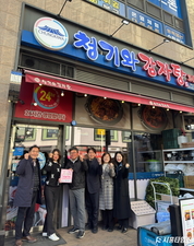 [시흥타임즈] 시흥시 배곧2동(동장 신제승)과 함현상생종합사회복지관은 지난 12월 30일, 관내 취약계층을 위한 나눔을 꾸준히 실천해 온 청기와감자탕 배곧신도시점에 감사의 마음을 전하며 ‘우리동네 나눔가게’ 현판을 전달했다. ‘우리동네 나눔가게’는 지역 내 업체의 자발적인 후원을 발굴해 취약계층과 연계함으로써, 이웃이 함께 돌보는 나눔 공동체를 만들어 가는 사업이다. 청기와감자탕 배곧신도시점은 지난 7월부터 현재까지 관내 취약계층을 대상으로 매월 1만 원 상당의 식사이용권 30장을 꾸준히 후원하며 경제적 부담으로 외식이 어려운 이웃들에게 따뜻한 한 끼를 지원해 오고 있다. 청기와감자탕 배곧신도시점 대표는 “작은 정성이지만, 이웃들에게 든든한 한 끼가 되길 바라는 마음으로 후원에 참여했다”라며 “앞으로도 이웃들에게 힘이 될 수 있도록 꾸준히 도움을 이어가며 지역사회에 보탬이 되고 싶다”라고 말했다. 신제승 배곧2동장은 “지역의 어려운 이웃을 위해 지속적으로 후원해 주신 청기와감자탕 배곧신도시점에 깊이 감사드린다”라며 “앞으로도 민관이 협력해 복지 사각지대에 놓인 이웃을 세심하게 살피고, 후원의 마음이 꼭 필요한 곳에 잘 전달될 수 있도록 최선을 다하겠다”라고