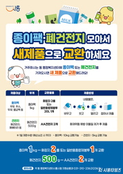 [시흥타임즈] 시흥시(시장 임병택)는 생활 속 자원순환 문화 확산을 위해 종이팩 교환 사업을 지속 추진하는 한편, 올해부터 폐건전지 교환 사업을 확대 시행한다. 이번 사업은 가정에서 쉽게 배출되는 재활용 가능 자원을 별도로 수거해 고품질 자원으로 재활용하고, 시민 참여에 대한 보상 체계를 마련해 분리배출 실천을 생활화하기 위해 추진된다. 우유 팩, 주스 팩, 두유 팩, 멸균 팩 등 종이 팩은 ‘내용물을 비우고 물로 헹군 뒤 건조해 펼친 상태’로 관할 동 행정복지센터에 가져오면 된다. 종이 팩은 1㎏당 화장지 2롤 또는 종량제봉투(일반 20ℓ) 1장으로 교환되며, 1인당 1일 최대 10㎏까지 가능하다. 폐건전지는 화재 예방을 위해 이물질을 제거한 후 제출하면 500g당 AA 건전지 2개로 교환할 수 있으며, 1인당 1일 최대 5㎏까지 교환이 가능하다. 종이 팩은 일반 폐지와 달리 고급 펄프 원료로 재활용되는 고부가가치 자원으로, 분리배출 시 새 종이 제품 생산에 필요한 원료와 에너지를 절감하는 효과가 있다. 또한, 폐건전지를 별도로 수거해 재활용하면 금속 자원을 회수해 재사용할 수 있어 자원 채굴을 줄이고 온실가스 감축에도 이바지한다. 시는 교환 인센티브 제공