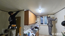 [시흥타임즈] 시흥시(시장 임병택)는 지난 11월 18일 시흥시북부중장년센터가 양성한 ‘도배기능사’ 과정 수료생(7명)과 관계자 등 총 10명이 대야동 취약계층 2가구를 대상으로 도배 봉사활동을 진행했다. 이번 봉사활동은 중장년층 재취업을 지원하기 위해 운영되고 있는 ‘도배기능사 전문인력 양성과정’의 일환으로, 참여 수강생들이 170시간 이상의 이론·실습 교육을 이수한 뒤 현장 경험을 쌓기 위한 사회공헌활동으로 추진됐다. 수료생들은 각 가구를 방문해 방, 거실 등 노후된 공간을 직접 도배하며 주거환경 개선에 힘을 보탰다. 수료생들은 “연습실에서 배웠던 것과 실제 가정에서 진행하는 작업은 달라 많은 것을 배울 수 있었다”라며 “힘들었지만, 어르신들이 기뻐하시는 모습을 보며 큰 보람과 성취감을 느낀 시간이었다”라고 소감을 전했다. 정호기 시흥시 경제국장은 “중장년층의 전직과 재취업 지원을 위한 실무 중심의 기술 교육으로 지역사회와 함께 성장할 수 있는 중장년 지원프로그램을 지속적으로 확대해 나가겠다”라고 밝혔다. 시흥시북부중장년센터는 중장년층의 직업능력개발, 재취업 지원, 생애설계 상담 등 다양한 프로그램을 운영하며 지역사회와 상생하는 중장년 지원 플랫폼 역할을