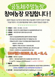 [시흥타임즈] 시흥시는 도시민의 농업 체험 기회를 확대하고 지역공동체 활성화를 도모하기 위해 ‘2026년 공동체 주말농장 조성 및 운영 지원 사업’을 운영하는 가운데, 민간 주도 공동체 주말농장 5곳을 오는 2월 2일부터 4일까지 모집한다. 이번 사업은 주민들이 함께 농작물을 재배하고 교류할 수 있는 공동체가 기반의 주말농장 운영을 지원하는 시범 사업으로, 시민들의 건전한 여가문화 조성은 물론 이웃 간 소통과 협력을 위해 추진된다. 선정된 공동체에는 전문 도시농업관리사가 직접 현장을 방문해 텃밭 관리 요령과 친환경 병해충 방제 방법을 교육하고, 공동체 활동 프로그램 운영을 지원하는 등 도시농업 공동체 활성화 중심의 맞춤형 교육프로그램이 제공된다. 신청 대상은 시흥시 도시농업공동체에 등록된 공동체가 운영 중인 주말농장이다. 주민을 대상으로 공개 분양해 텃밭 가꾸기 활동을 하는 단체여야 하며, 농장 규모는 최소 1,500㎡ 이상, 운영 구좌 50구획 이상을 갖춰야 한다. 구획당 면적은 30㎡(약 10평) 내외 기준이다. 또한 무비닐, 무화학농약, 무화학비료 등 이른바 ‘3무 농법’ 실천 노력이 확인되는 농장을 우선 고려한다. 신청서는 시청 누리집의 고시공고에서