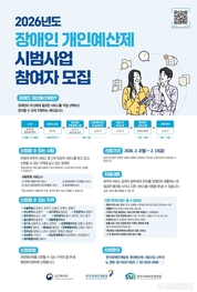 [시흥타임즈] 시흥시는 2월 2일부터 13일까지 ‘2026년 장애인 개인 예산제 시범사업’ 참여자를 모집한다. 장애인 개인 예산제는 장애인이 자신에게 필요한 서비스를 직접 선택하고 관리할 수 있게 지원하는 제도다. 참여자는 자신의 장애인 바우처 서비스 급여의 일부(최대 20%)를 개인 예산으로 전환해 이용계획에 따라 물품 구매ㆍ서비스 이용에 활용할 수 있다. 모집 대상은 신청일 기준 시흥시에 거주 중이고, 장애인 바우처 서비스 4종(▲장애인활동지원서비스 ▲발달장애인 주간 활동 서비스 ▲청소년 발달장애인 방과후활동 서비스 ▲발달재활서비스) 중 1개 이상의 서비스를 받고 있는 장애인이다. 참여자는 개인 예산제 시범사업 사무국인 한국장애인개발원 선정위원회의 심사를 거쳐 선발되며, 선정 결과는 2월 말 안내할 예정이다. 선정된 참여자는 3월부터 4월까지 복지 전문기관을 통해 개인 예산 이용계획을 수립하고, 5월부터 10월까지 6개월간 개인 예산을 활용하면 된다. 사업 참여를 원하는 사람은 2월 2일부터 13일까지 신분증을 지참해 주소지 관할 동 행정복지센터를 방문해서 신청하면 된다. 관련 문의는 시흥시 장애인복지과 장애인복지팀(031-310-6865)으로 하면 된다