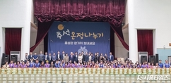[시흥타임즈] 시흥시(시장 임병택)는 추석 명절을 앞두고 지난 9월 25일 시흥시체육관에서 시흥시1%복지재단이 주관한 ‘추석 온정 나누기’ 행사에 참여해 취약계층을 위한 행복 꾸러미 제작과 전달에 동참했다. 이번 행사는 한가위를 맞아 어려운 이웃들이 따뜻한 명절을 보낼 수 있도록 마련된 것으로, 시흥시1%복지재단은 지난 8월부터 약 5주에 걸쳐 추석 온정 나누기 캠페인을 진행해 나눔의 마음을 한데 모았다. 시민과 기업, 단체의 자발적인 후원이 이어져 행복 꾸러미는 즉석밥, 참치캔, 과일, 한과, 비타민 등 다양한 식품으로 구성됐다. 행사 현장에는 시흥시처음처럼봉사회와 시흥시자원봉사센터 소속 봉사자들이 참여해 포장 작업을 도우며 나눔의 의미를 더했다. 완성된 1,000상자의 행복 꾸러미는 각 동 행정복지센터와 사회복지시설 등 70여 곳을 통해 관내 취약계층에 전달된다. 또한, 행사 현장에서는 후원자와 유공자에게 표창장과 감사패를 수여하며, 후원자들의 선행과 봉사자들의 헌신을 기렸다. 이로써 후원과 봉사가 어우러진 진정한 명절 나눔의 의미를 더욱 깊게 했다. 임병택 시장은 “여러분의 따뜻한 참여 덕분에 많은 이웃이 풍요로운 한가위를 보낼 수 있게 돼 기쁘다”라며