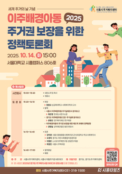 [시흥타임즈] 시흥시주거복지센터는 오는 10월 14일 오후 3시, 서울대학교 시흥캠퍼스 806호에서 ‘이주배경아동 주거권 보장을 위한 정책토론회’를 개최한다. 이번 토론회는 ‘세계 주거의 날’을 기념해 마련된 자리로, 지역사회 주거복지 과제 중 하나인 이주배경 아동의 주거권 보장을 위한 실태 공유와 정책적 대안 모색을 목표로 한다. 행사는 시흥시주거복지센터와 시흥시 아동주거권 네트워크가 공동 주관하고, 경기도와 경기도주거복지센터가 지원하는 ‘2025년 경기도 주거복지 아이디어 공모사업’의 일환으로 진행된다. 토론회는 정원오 성공회대학교 사회복지학과 교수(사회적협동조합 시흥주거복지센터 이사장)의 사회로 진행된다. ▲최은영 한국도시연구소 소장의 ‘시흥시 이주배경아동 주거실태조사 분석보고’ ▲유병선 경기복지재단 연구위원의 ‘경기도 이주배경아동 인권ㆍ주거실태 분석보고’ ▲권영실 공익재단법인 동천 변호사의 ‘이주배경아동의 주거권 보장을 위한 제도적 과제와 정책방향’ 등 심층 발제가 예정돼 있다. 이어지는 종합토론에는 강미경 군서초등학교 학교사회복지사(시흥시정왕종합사회복지관), 오경석 경기이민사회통합지원센터 센터장, 이영은 LH토지주택연구원 선임연구위원, 최정인 시흥시